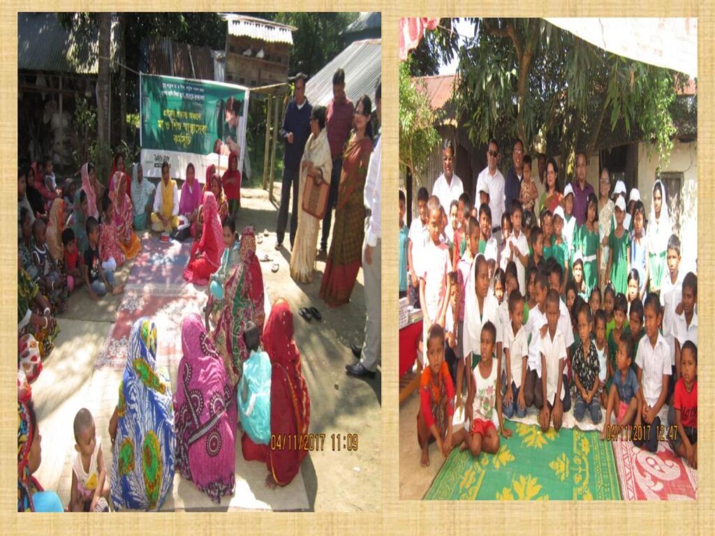 - কর্মএলাকার ৫টি মডেল গ্রামে ভূমিষ্ট হওয়ার সঙ্গে সঙ্গে নবযাতকের জন্মনিবন্ধন ও নির্ধারিত সময়ে প্রাথমিক বিদ্যালয়ে গমন নিশ্চিত করা হবে;